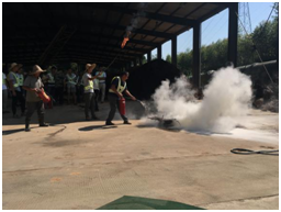 刘新鲁副经理组织基地职工及工人10多人,参加了消防演练并对灭火救援基本处置程序和逃生技巧进行了详细解读,同时重申了防范火患的重要性,并给全体参演人员讲解灭火器的正确使用方法。