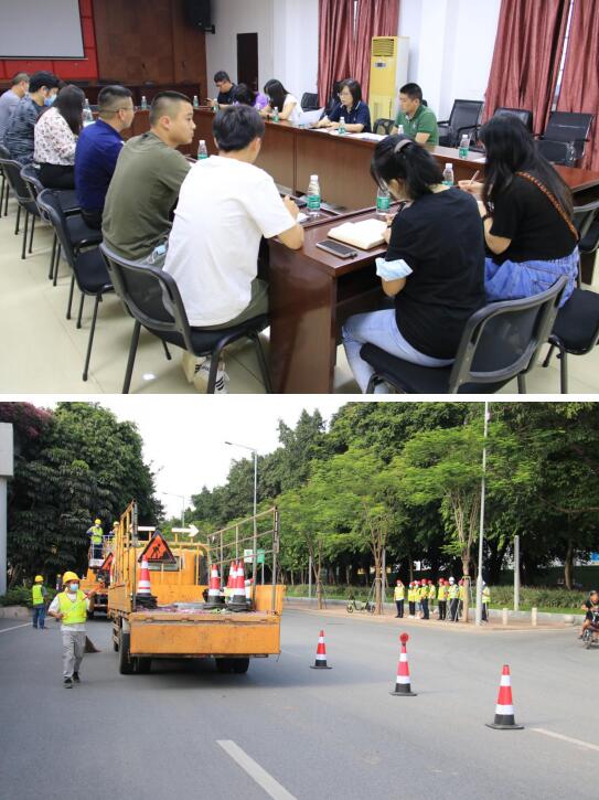 此次演练参照《道路交通标志和标线第4部分:作业区》(GB 5768.4-2017 )要求,开展临时占道安全围蔽及高空作业现场演练,各岗位人员按照预定方案各司其责,演练圆满完成。