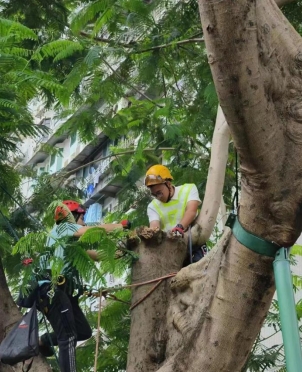 据了解,该凤凰木古树因2017年天鸽台风导致主枝折断。“树木医生”发现该树干中空严重,于是指导现场工作人员对树洞进行消毒,将洞内腐烂木质部彻底清除,接着对树体进行填充和塑形,并涂抹环氧树脂等材料,使树体木质部隔绝空气和水份,从而得到修复。