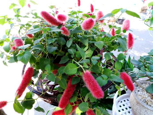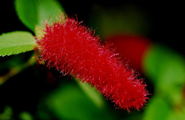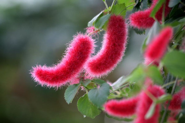 又名红尾铁苋,大戟科铁苋菜属常绿灌木,枝条呈半蔓性,株高10厘米至25厘米,能匍匐地面生长,若用吊盆栽培呈悬垂状。雌花短穗状,具绒毛光泽,鲜红色,形似猫尾,又像红色毛毛虫,商家称之为“岁岁(穗穗)红”,取其“岁岁红火”之意。适合花坛美化,吊盆栽植或地被。