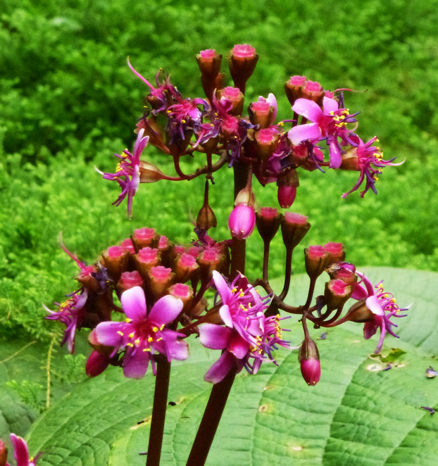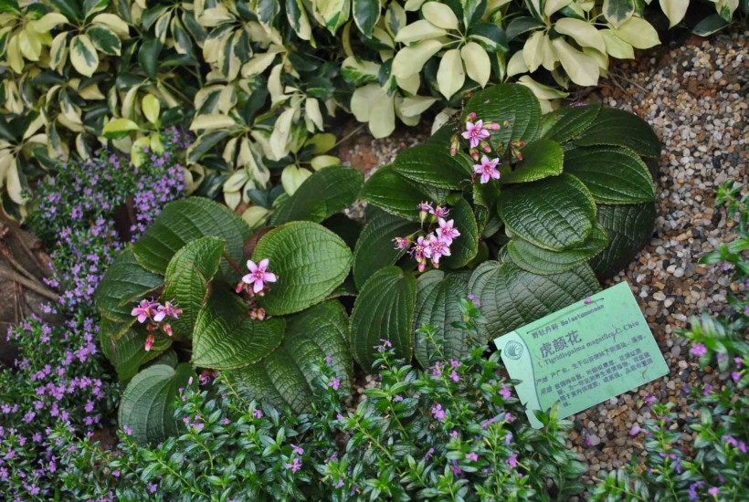 野牡丹科虎颜花属多年生常绿草本,国家一级保护植物,原产我国广东西南部,该属植物只有虎颜花1种,虎颜花叶片硕大,叶形美观,耐阴性强,花蕾小巧玲珑 、鲜艳水灵,可作为高档观叶植物用于室内和庭院观赏。
