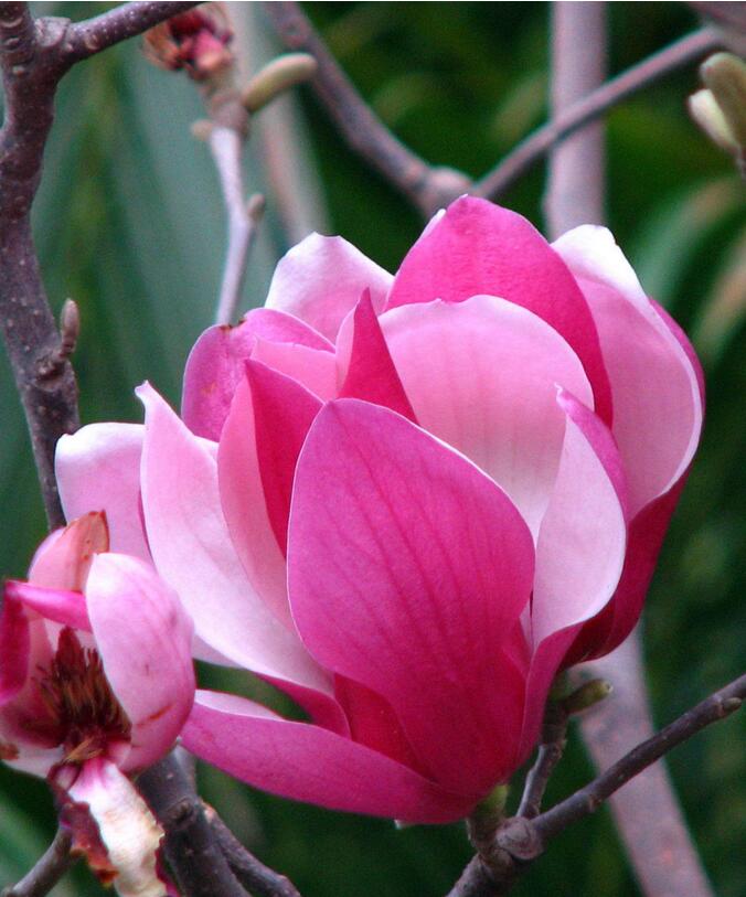 二乔玉兰是早春色、香俱全的观花树种,花大色艳,观赏价值很高,是城市绿化的极好花木。广泛用于公园、绿地和庭园等孤植观赏。可用于排水良好的沿路及沿江河生态景观建设。
