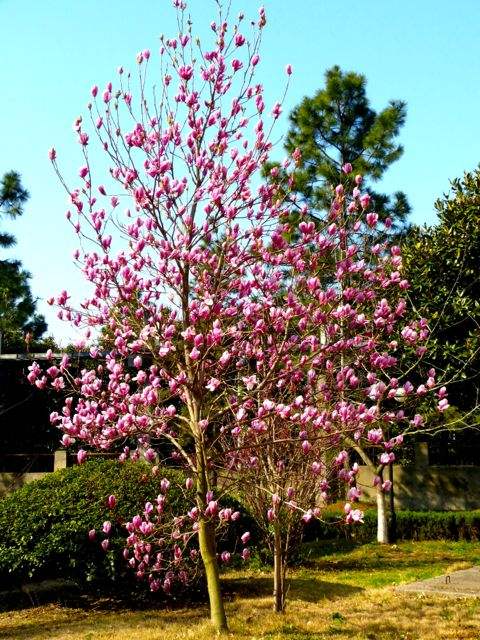 木兰科木兰属落叶小乔木,系白玉兰和紫玉兰的杂交种。树高6-10米,小枝无毛。叶片互生,叶纸质,倒卵形,长6-15厘米,宽4-7.5厘米。花蕾卵圆形,先花后叶,花浅红色至深红色。聚合蓇葖(gū tū)果长约8厘米,直径约3厘米;种子红色,宽倒卵形或倒卵圆形,侧扁。花期2-3月,果期9-10月。