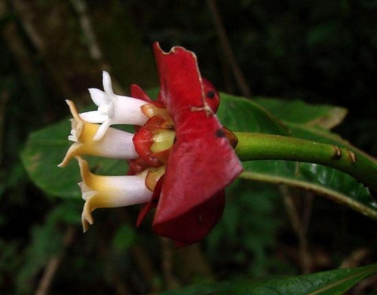 嘴唇花,茜草科九节属灌木或小乔木,通常生长在海拔350~1300米的阔叶林和山坡林中,热带雨林的灌木丛中也有分布。在中美洲和南美洲一些国家的热带雨林中,像哥伦比亚、巴拿马、厄瓜多等国家都可以看到这种花。