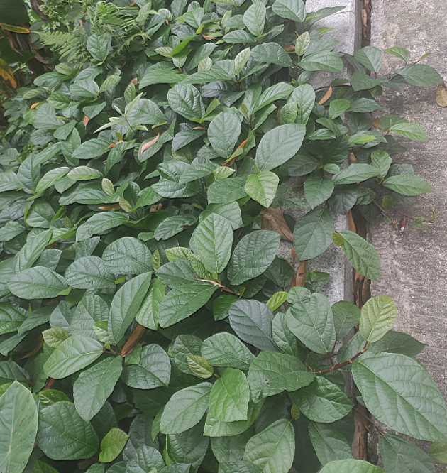匍匐木质藤本植物,茎上生细长不定根,节膨大;高可达40厘米,叶坚纸质,叶片倒卵状椭圆形,先端急尖,基部圆形至浅心形,基生侧脉较短,侧脉表面被短刺毛,托叶披针形,榕果成对或簇生于匍匐茎上,常埋于土中,球形至卵球形,基生苞片细小;雄花生榕果内壁孔口部,无柄,雌花生另一植株榕果内壁,有短柄。瘦果卵球形,表面有瘤体,花柱侧生,5-6月开花,7月结果。