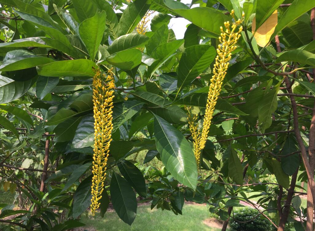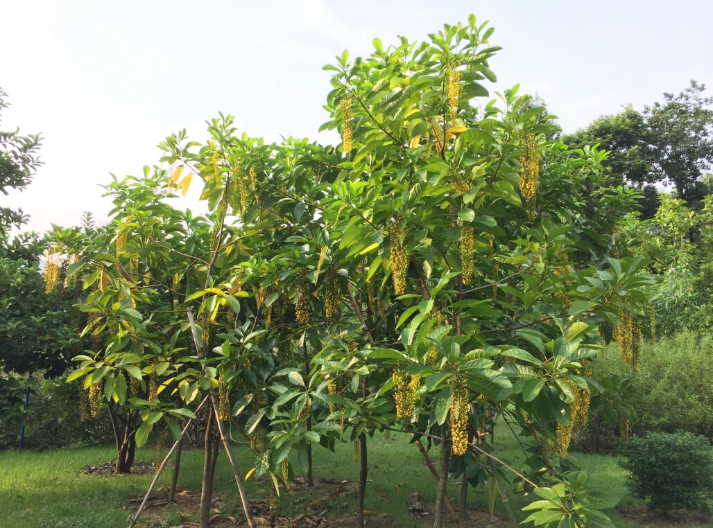 金虎尾科垂序金虎尾属常绿大灌木至小乔木,原产于南美洲的亚马逊雨林,在热带地区常作为观赏植物栽培,在我国极少见。其花冠黄色,花聚生成总状花序,长可达40~50 cm,下垂,形似金链,因此又名“金链树( Golden Chain Tree )”。