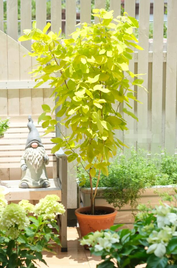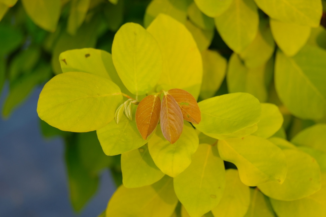 蝶形花科假木豆属灌木或小乔木。幼枝圆柱形,密被黄色或白色贴伏丝状毛;小叶近革质,椭圆形或宽卵圆形,顶生小叶,两端钝或急尖,幼时两面被贴伏丝状毛。新叶橙黄色,成熟后转金色,气温越高光照越强,叶色越金黄。