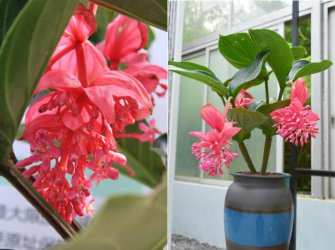 野牡丹科酸脚杆属多年生常绿灌木,也称宝莲花、粉苞酸脚杆。株高0.5~2m。单叶对生,叶片卵形至椭圆形,穗状或圆锥花序下垂,较大花外有粉红或粉白色总苞片。花期12月至翠年5月。 宝莲灯...