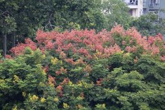 别名 复羽叶栾树 , 无患子科 栾树属 乔木,高可达20余米,因在国庆期间盛开,故又叫国庆花 。花开时节,花果同挂枝头,满树金黄色小花,鲜红色膜质果皮膨大如小灯笼,成串挂在...