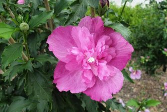 拉丁名: Hibiscus syriacus var. violaceus L. F. Gagnep. 锦葵科,木槿属。落落叶灌木,高3~4 m。小枝密被黄色星状绒毛。叶菱形至三角状卵形,具深浅不同的3 裂或不裂;托叶线形,长约 6 mm ,疏被柔...