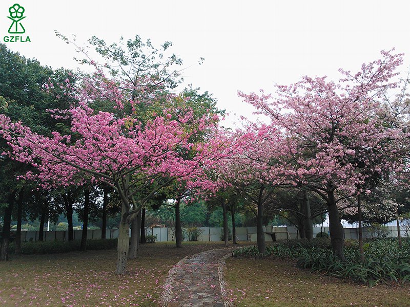 【园林用途】树冠呈伞形,叶色青翠,绿荫如盖,成年树树干呈酒瓶状;冬季盛花期满树姹缤纷,秀色照人,是优良的观花乔木,可用于庭园绿化美化,也可作行道树。