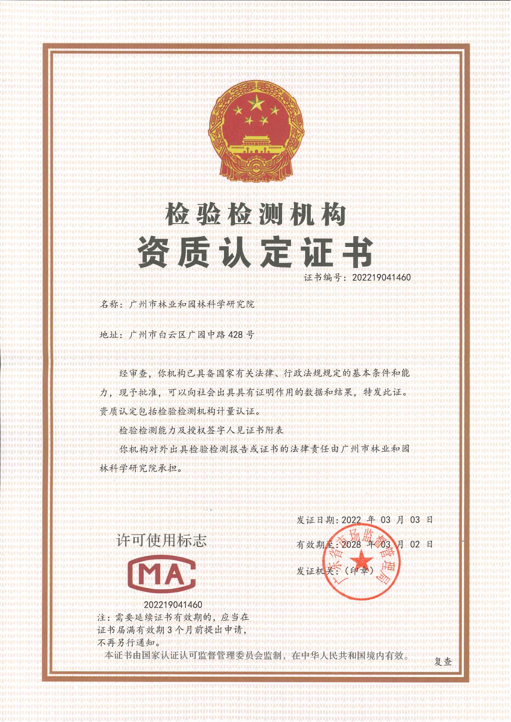 广州市林业和园林科学研究院检测中心(以下简称检测中心)是从事园林土壤、肥料、植物营养元素、水质、园林植物病虫害检测的专业检测机构,从事园林绿化检测已有十几年,已取得广东省质量技术监督局的检验检测机构资质认定证书(CMA证书编号:202219041460),具有CMA资质和第三方实验室地位。囊括接样室、制样室、检测操作室、加热消化室、称量室、仪器室等功能区,拥有多台大中型分析测试及科研仪器设备,包括原子吸收分光光度计、数字单通道工业火焰光度计、紫外可见分光光度计、智能台式高速冷冻离心机、微波消解仪、全自动凯氏定氮仪、恒温培养箱和冷藏箱等仪器设备,可提供绿化土壤、植物、肥料和水质等领域分析测试及其技术服务。