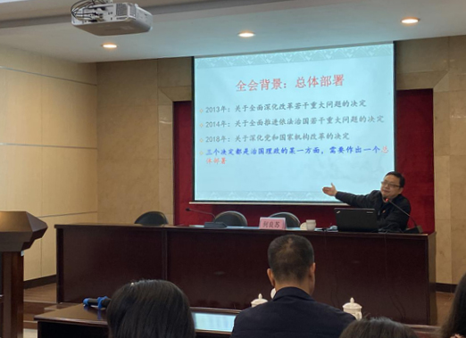 会上,何良苏教授以“开创‘中国之治’新境界的时代宣言”为主题,就全会背景、全会主要议题等方面进行了理论宣讲,着重从““中国之治”具备的显著优势、中国之治”实现的根本保障两个方面进行梳理解读。整场宣讲主题鲜明、内容丰富、浅显易懂、亮点纷呈,与会人员受益匪浅。