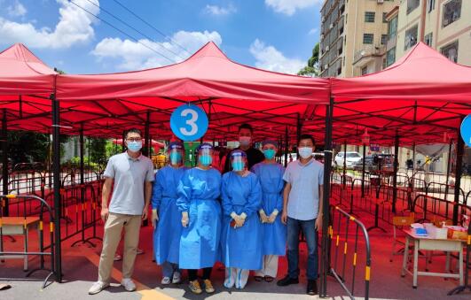 2022年6月23日,我院机构第一党支部植物研究所全体党员参加大源社区振北徐公祠核酸检测点志愿服务活动。