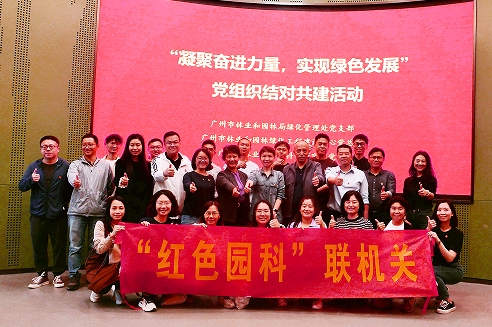 为加强党建引领,促进市园科院与广州市林业和园林局绿化管理处(以下简称“绿化处”)、广州市林业和园林绿化工程建设中心(以下简称“建设中心”)的资源共享、业务工作经验互鉴,凝聚奋进力量,实现绿色发展,2023年 12月15日,我院党委书记阮琳和副院长刘兴跃、副院长毕可可带领工程技术中心党支部、植物研究所党支部、白云苗圃党支部和建设管理部党支部联合广州市林业和园林局绿化管理处党支部和广州市林业和园林绿化工程建设中心党总支,开展“凝聚奋进力量,实现绿色发展”为主题的党建共建活动。