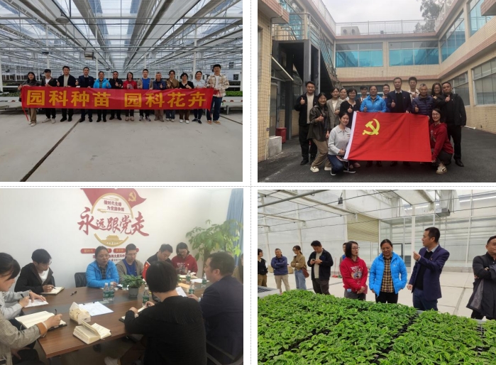 共建支部共同研学了《绿美广州五年行动计划(2023—2027年)》,实地参观了种苗研发中心组培自动化灌装生产线、阴生植物生产大棚以及黄边基地自动化盘床温室。双方就生态文明建设、植物碳标签、组培科普推广以及产业化推广应用等方面开展交流。