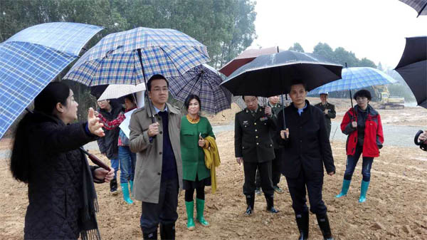 2月19日,省林业厅陈俊光厅长、陈俊勤巡视员及有关部门负责人在市林业和园林局吴敏副局长、粟娟总工程师的陪同下,冒雨到我院负责实施的2016年义务植树工地现场检查指导工作。陈俊光厅长对工程进度和施工效果非常满意并给予充分肯定,提出:一是以公园规划的标准,做好绿化树种的选择和布局,避免“苗圃式”种植;二是在确保安全的前提下,克服天气等不利因素的影响,抓好工作进度,确保目标的实现。