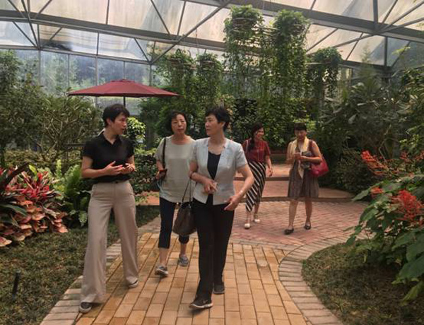 刘红秘书长一行实地察看了种质资源圃内种植的各类亚热带、热带观赏植物,了解了资源圃品种的引进、收集、保存情况。随后参观了院机构科技馆、兰花园、立体绿化示范点等处,阮琳院长详细介绍了园科院的发展历程、整体情况、主要工作内容和科研成果。