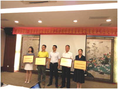 2018年7月27日,我院参加了由广州市住房和城乡建设委员会组织召开的“广州市创建广东省宜居环境范例奖工作总结颁奖暨宜居环境建设现场会议”。会上对被授予2017年广东省宜居环境范例奖“广州市人行天桥立交桥绿化项目”等四个项目进行了经验总结,并对获奖的项目单位进行了表彰和授牌。参会代表还对我院天桥绿化技术基地进行了实地考察,交流了人行天桥立交桥绿化建设经验。