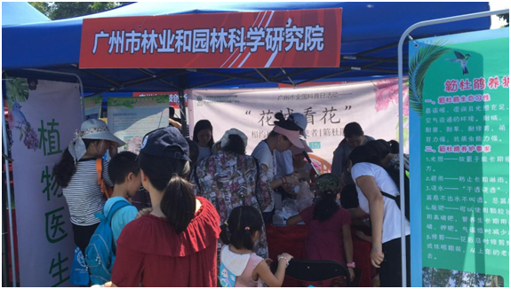 2018年9月15日, 本届广州市全国科普日活动以“创新引领时代,智慧点亮生活”为主题的2018广州市全国科普日主会场活动在华南植物园温室大草坪举行,我院开展了以“花城看花”为主题,设置了“识花辩虫”、“找找我在哪”、DIY徽章涂鸦制作、“植物医生”等科普活动,受到了市民们的热情参与。