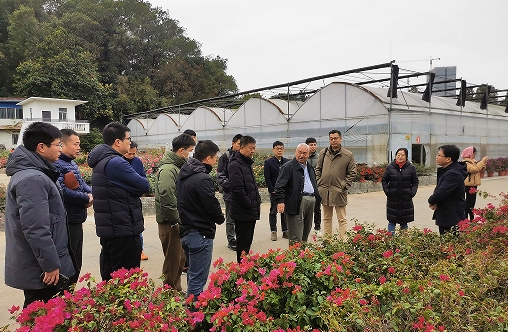 2024年1月24日,东莞市水务局副局长、市河长办副主任肖清忠一行到市园科院白云苗圃调研交流,广州市林业和园林局科技处一级调研员江定钦、市园科院白云苗圃负责人等相关同志陪同。