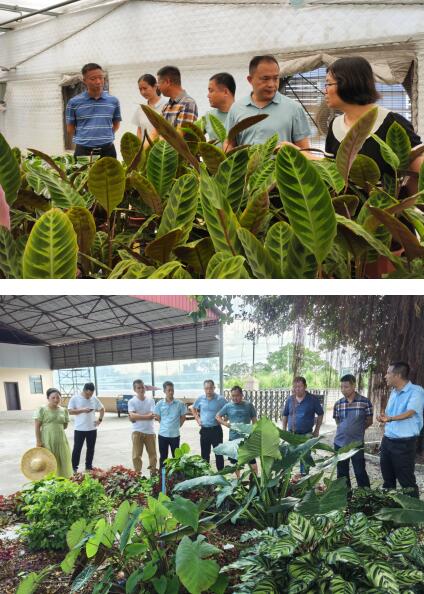 交流队伍一行参观了我院温室种苗、阴生观叶植物盆栽以及广州系列矮牵牛,详细了解了我院种苗自动化生产、新优花卉苗木筛选培育以及推广应用等情况,随后双方就观叶植物在园林景观中的应用、品种资源收集开发利用、花卉市场行情、行业动态等方面开展座谈交流。农星生物、赋美农业等企业负责人对我院“园科花卉”、“园科种苗”示范生产的经营模式以及我院运行的省内首个自动化智能化温室表示赞誉。