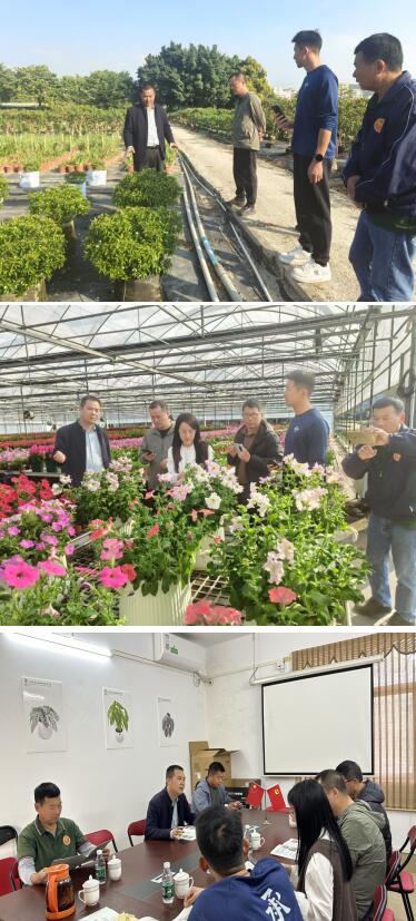 2024 年 12 月 10 日下午,广州外国语学校谭齐亮副校长一行前往市园科院东平基地开展参观交流工作,种苗研发中心负责人和技术人员陪同参观。
