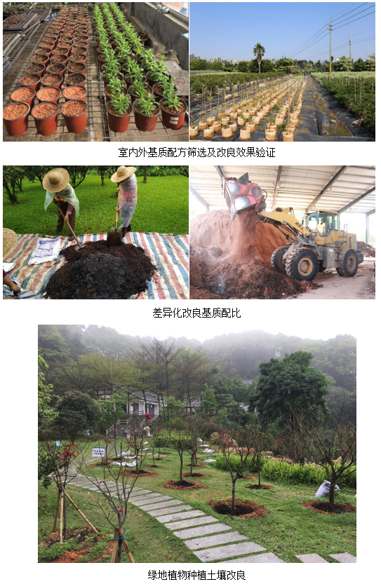 由于城市经济的发展受人口密度大、人为活动强烈因素的影响,城市绿地土壤的原有性状受损,主体建筑形成的建筑垃圾因埋深或者清运暴露出一系列问题,污染因素增多、物理性质不良、缺乏有机质和养分,对绿地生态景观效果以及植物的生长形成直接影响。我院依托“广州市园林种植土修复改良关键技术研究”和“珠三角地区绿地土壤污染评估体系及修复改良技术研究”等科研课题以及南沙区横沥岛尖耕植表土利用、珠江公园等绿地栽植土改良技术服务,在土壤修复改良研究实践中,基于对不同功能绿地、植物生长习性认知和土壤质量分析,构建乔、灌、草分类的植物景观提升以及差异化配比的土壤修复改良关键技术体系,有效改善了不良土壤理化性质,积极打造了良好的土壤生态条件,为城市绿地生态功能恢复提供了良好的技术基础。