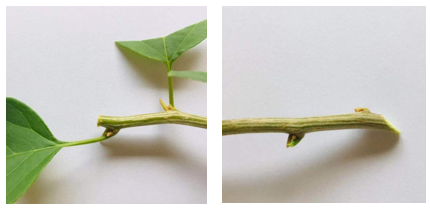3. 插穗处理:插穗长度应控制在10~15cm长度为宜,可留两到三片叶子。上端切口应平切,下段切口应斜切。