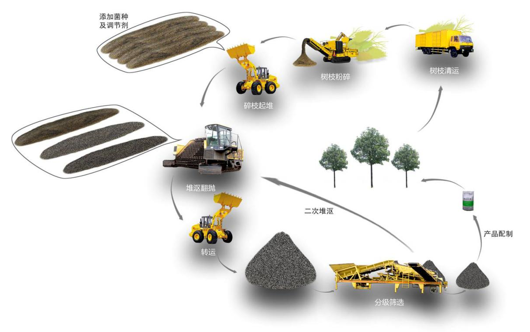 通过对园林废弃物进行收集、粉碎、堆沤然后进行产品加工,可以达到园林废弃物堆肥的资源化利用,作为土壤改良剂、营养基质和有机肥等为植物生长提供养分,进行蜕变,实现资源的可循环利用。