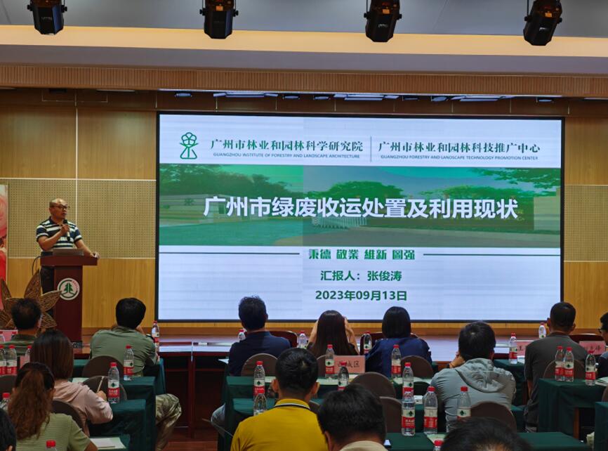 我院土壤环境研究所所长张俊涛作“广州市绿化废弃物收运处置及利用现状”报告,重点围绕广州市园林绿化废弃物的产生、收运、处置和产品应用情况等方面内容做了详细介绍。