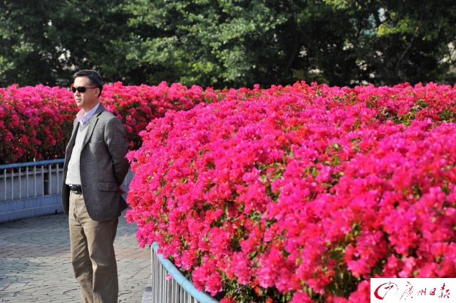 2017年2月12日,广州市东风路一座圆形天桥上,红色的勒杜鹃已然盛放,不少走上天桥的行人都会稍作停留,掏出手机拍下这个美丽的场景。花城广州,悄然进入了第一波赏花期。广报记者 杨耀烨 摄