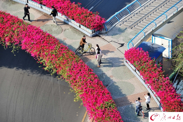 进入立春,温暖的广州已呈现出勃勃生机。特别是近日已经盛放的簕杜鹃,更是率先给广州天桥“穿上新衣”。