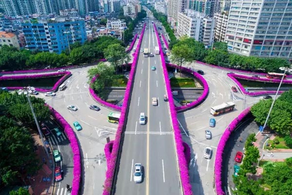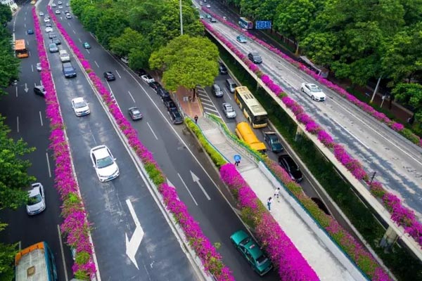 市内部分高架桥道路两旁的簕杜鹃渐次开放。去年10月,花城君经过海珠区新滘西路和东晓南路交界的立交桥时,拍下了路两旁簕杜鹃开放的盛况。