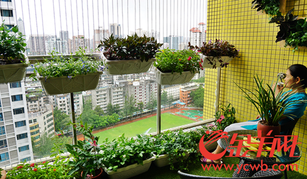 光秃秃的阳台变身梦想花园 金羊网记者陈秋明摄