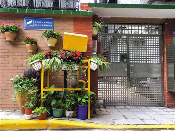 有居民非但不偷偷拿回家,反而把家里的几盆花草摆出门前来,挡住不那么好看的煤气管道架子,为美丽社区出一份力。在厂后街58号,几盆“相貌平平”的花草,与园科院送来的“高颜值”花草摆在一起,不显突兀,反而更显和谐。