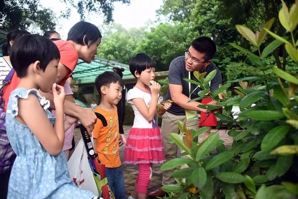 研究院工程师吴纯乐示范“景观DIY”引来小朋友围观