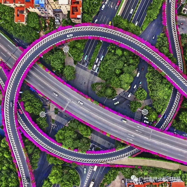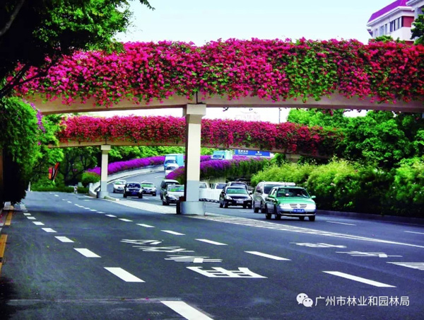 白天的绿叶繁花、晚上的霓虹光影,桥梁的绿化和亮化成就广州一绝。城市高架路不仅提供了便捷的交通,还打造出城市蜿蜒穿行的风景……目前,广州市共完成353座,接近309公里长的桥梁绿化整饰,增加绿化覆盖面积100多万平方米,形成了极具特色的城市空中绿廊、花廊,美化了生活空间、增加了城市特色,有效改善了城市居民的生活环境。11月的广州,繁花似锦,“空中花廊”频成“网红”。