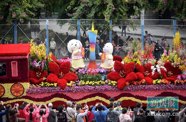 2月17日下午,由广州市旅游局和天河区政府联合主办的花车大巡游活动,在天河体育中心拉开帷幕。