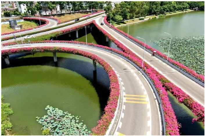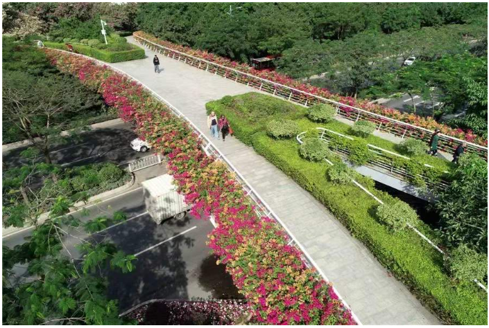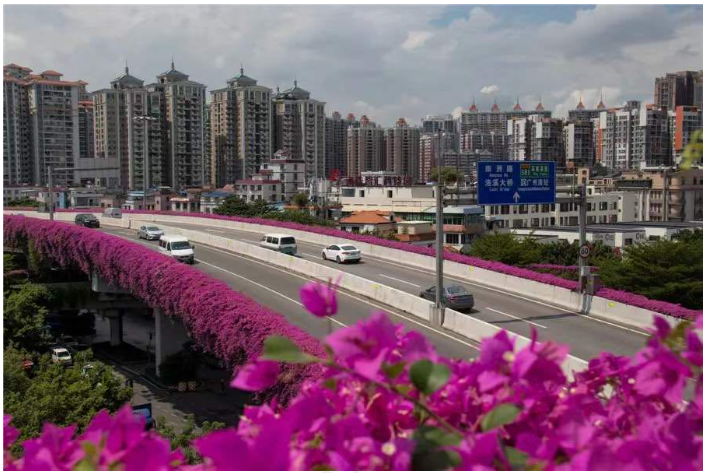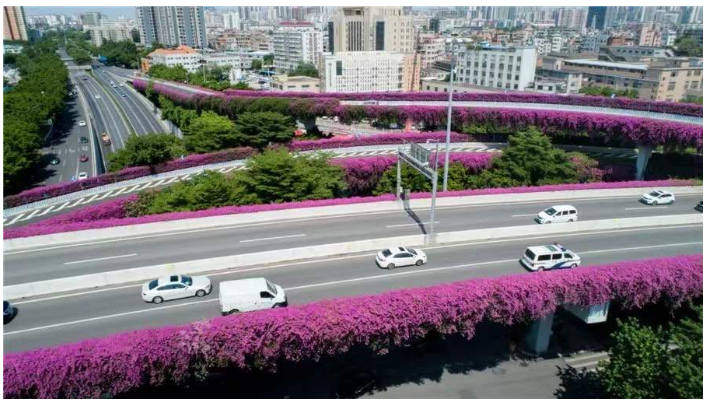 还是2003年,当时的三角梅在广州还是“两季有花,三季常绿”,花期为8月至10月。如今,已经升级为“四季有花,四季常绿”,练就了“开遍春夏与秋冬”的本领。目前,广州已完成426座约335公里长的桥梁绿化。