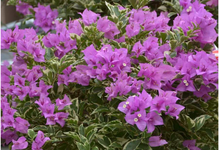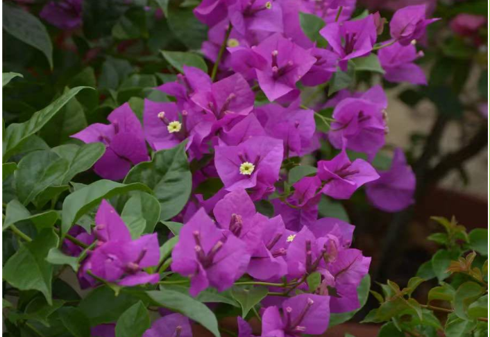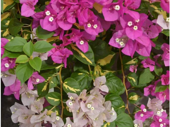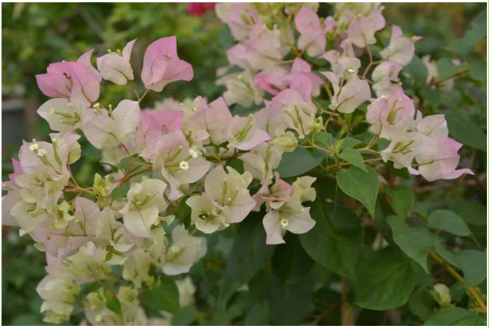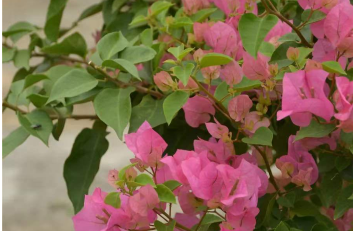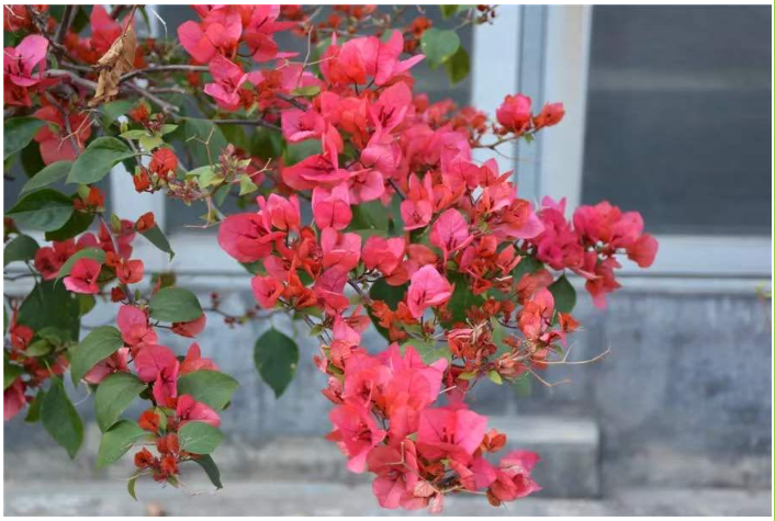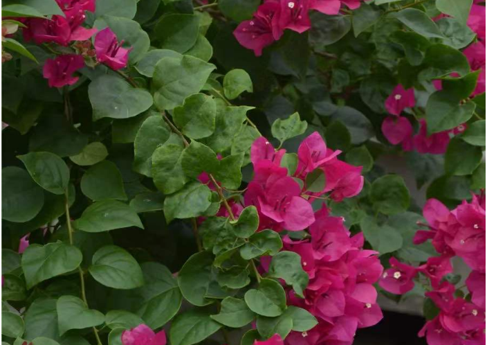 温度低于5℃,三角梅的生长表现就会受到影响,严重时会出现冻害。因此,进入冬季生长缓慢或休眠期前,要对植株进行较大强度的修剪,缩小植株体积,以防止枝条冻伤,并节约养分。每年11月底至12月初,视情况施用抗寒剂,提高植株抗寒力。