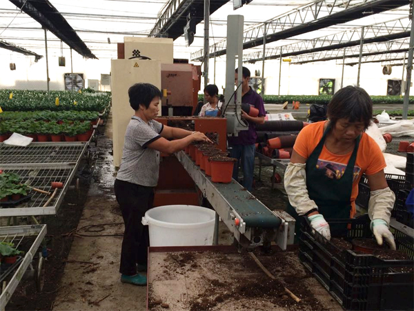近日,我院花卉生产大棚配备了新的生产设备,新引进的基质搅拌机和装盆机已顺利投入试用。上述设备替代了原来的人工拌泥和装盆,机械拌泥和装盆比人工操作更均匀,有效改善盆花基质的松紧程度,有利于植物根系的生长,提升了花卉产品的质量。同时,也使我院花卉生产的工作效率明显提高,节约了人力物力等成本。今后,我院将继续引进新式生产设备,使花卉生产逐步实现机械化、现代化。