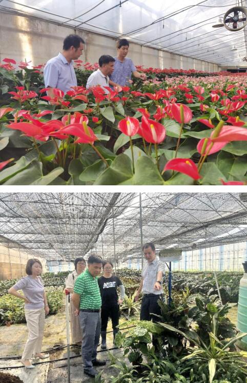 调研队伍参观了当地阴生观叶植物生产大棚、组培穴盘苗产业化生产,与相关负责人座谈交流,听取相关负责人在花卉产业发展中遇到的问题和困难,并就目前花卉行业形势、产品结构、产品营销模式等方面进行探讨交流。