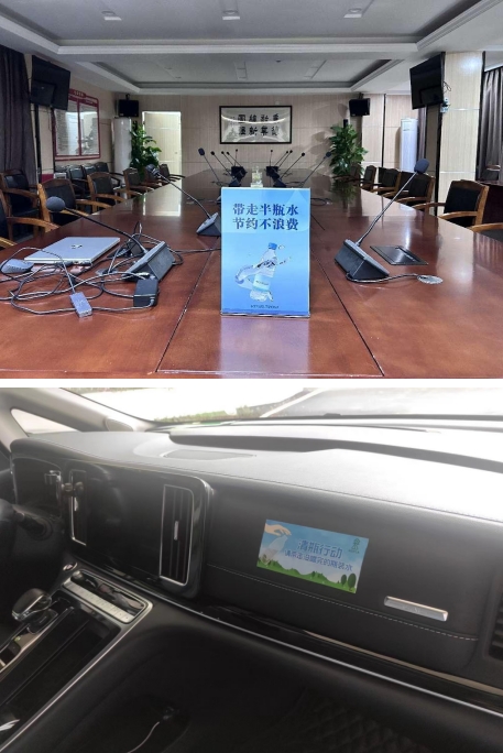 为大力推进“光瓶行动”,市园科院精心设计宣传海报,并充分利用LED屏幕轮流展播,通过在各类会场、公共休息区设置自助饮水机,在会场摆放形象直观的宣传台卡,在公务车内张贴“光瓶行动”标识,在矿泉水瓶附上“如果没喝完请把我带走”特色标签等形式,多措并举全面营造“半瓶水”不浪费的良好氛围。