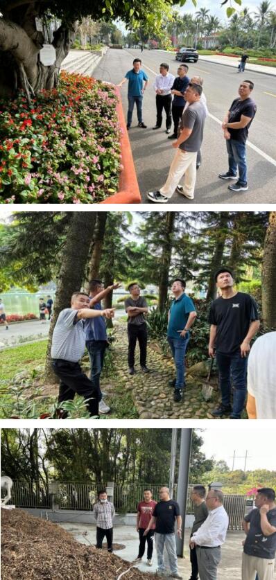 在湛江市城市管理和综合执法局园林绿化管理科的陪同下,我院技术团队对湛江市人民大道北、体育南路、疏港大道等多条主要道路的行道树开展了实地调查,了解到行道树存在树穴狭小、硬化铺装、土壤紧实、根系积水等问题,并对海滨宾馆的古树名木以及寸金桥公园的南洋杉古树后续资源进行了健康诊断,同时对以上树木后期的养护复壮工作提出了扩大树穴、土壤改良、加强水肥管理及病虫害防治等具体建议。此外,我院技术团队还赴湛江市南国热带花园的绿化废弃物处理点,实地调研其绿化废弃物资源化利用以及园区内树木复壮、土壤改良工作并给予专业意见。