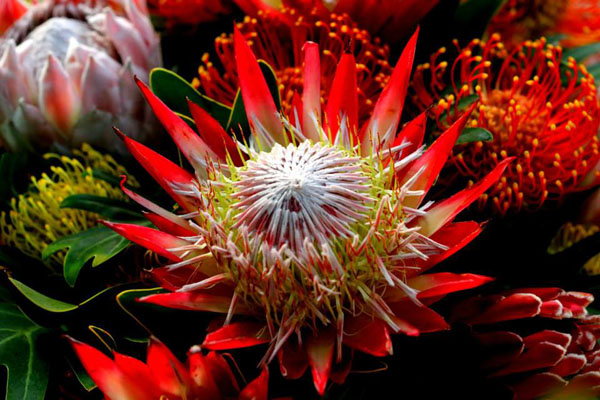又名普蒂亚花,是南非共和国的国花。以巨大的花魁,异常美丽的色彩与优雅的造型脱颖世界名贵花卉,号称“花中之王”。久开不败的帝王花,被誉为全世界最富贵华丽的鲜花,代表着旺盛而顽强的生命力,其花球中的花蕊可以开放很长时间,受到国内广大插花爱好者的喜爱和推崇。