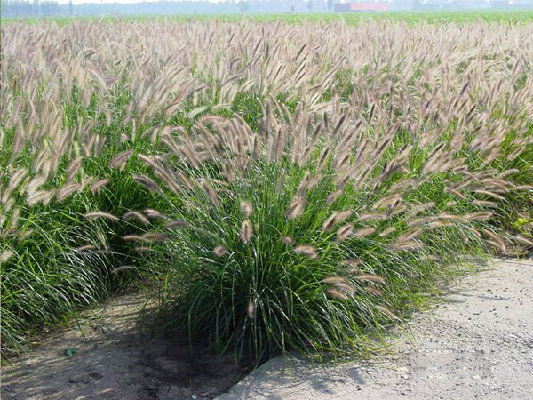 禾本科狼尾草属多年生草本植物,其茎秆直立、丛生,圆锥花序直立,主轴密生柔毛、刚毛粗糙,淡绿色或紫色。花果期夏秋季。花絮大而美丽、耐旱、抗倒伏,无病虫害,可应用于公园绿化,适用于花坛、花境、假山旁等配置,是优良的观赏草类。