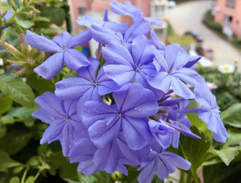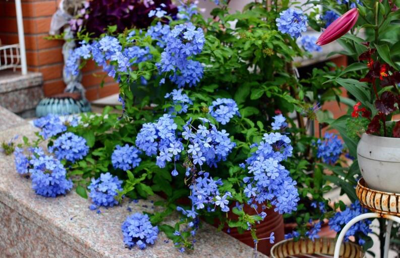 别称山灰柴、假靛(河南)、角柱花等,多年生直立草本,为白花丹科蓝雪花属植物。蓝雪花长势强健,耐热、较耐高温高湿,病虫害少,管理简单,观赏期长。叶色翠绿,花色淡雅,炎热的夏季给人以清凉感觉,可盆栽点缀居室、阳台。