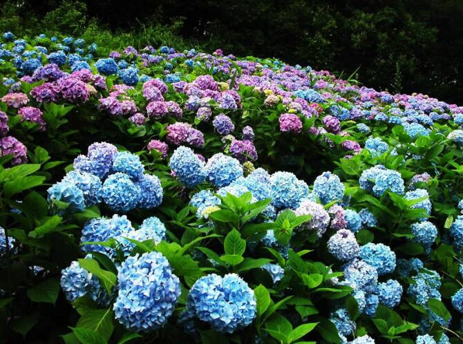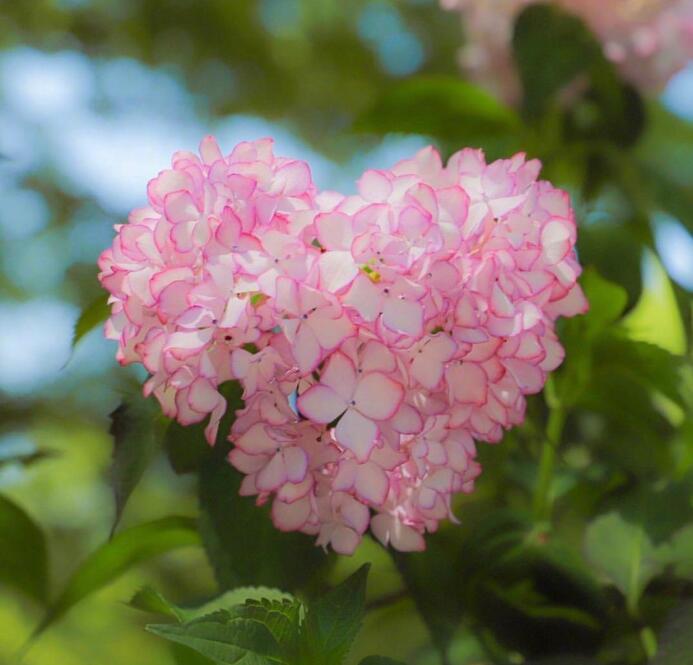 别名八仙花、紫阳花,虎耳草科绣球属灌木,原产我国、日本和朝鲜。其花型丰满、花序大而密集,花开时节,花团锦簇,花色能红能蓝。花色有蓝色、白色、紫红、粉红、桃红等色,令人悦目怡神,是一种极好的观赏花木,可作盆栽,也可在公园和风景区成片栽植形成景观。