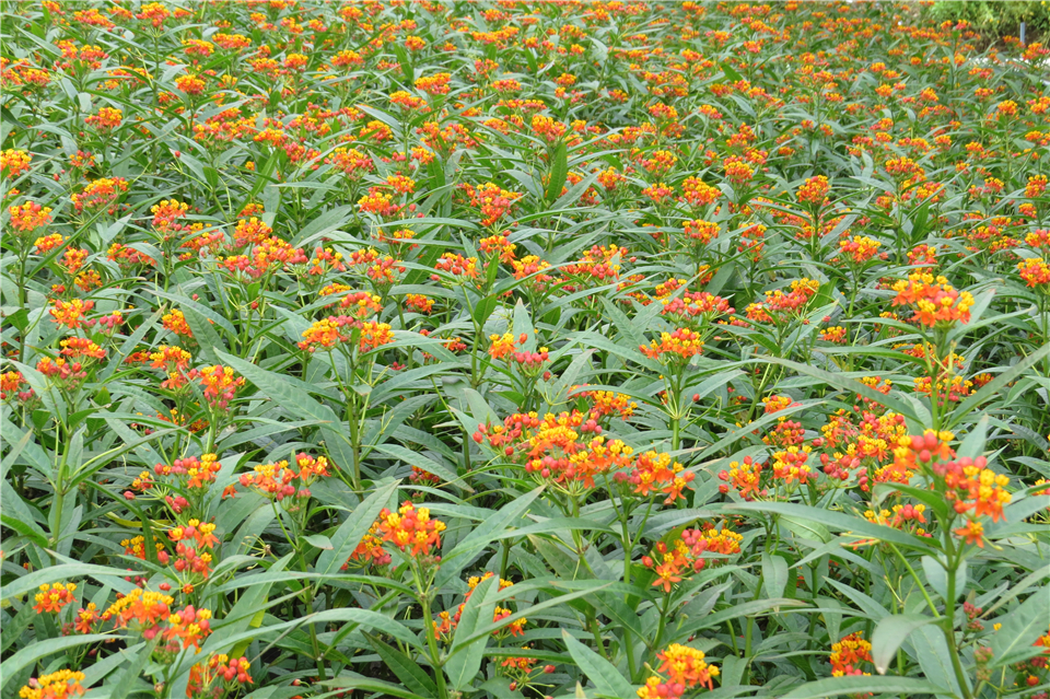 萝藦科马利筋属多年生直立草本,灌木状,株高0.5~2 m。全株含白色乳汁,幼枝被细柔毛。叶对生,纸质,披针形至椭圆状披针形。聚伞花序顶生或腋生,着花10~20 朵;花紫红色。花期6~11 月,果期8~12 月。马利筋在我国南北各地常见栽培。其叶片翠绿挺拔,花序秀美,小花密集, 复色花朵金黄朱红相叠,十分引人注目。可用于庭植、花坛栽植、切花和盆栽。其全株有毒,应用时需注意。